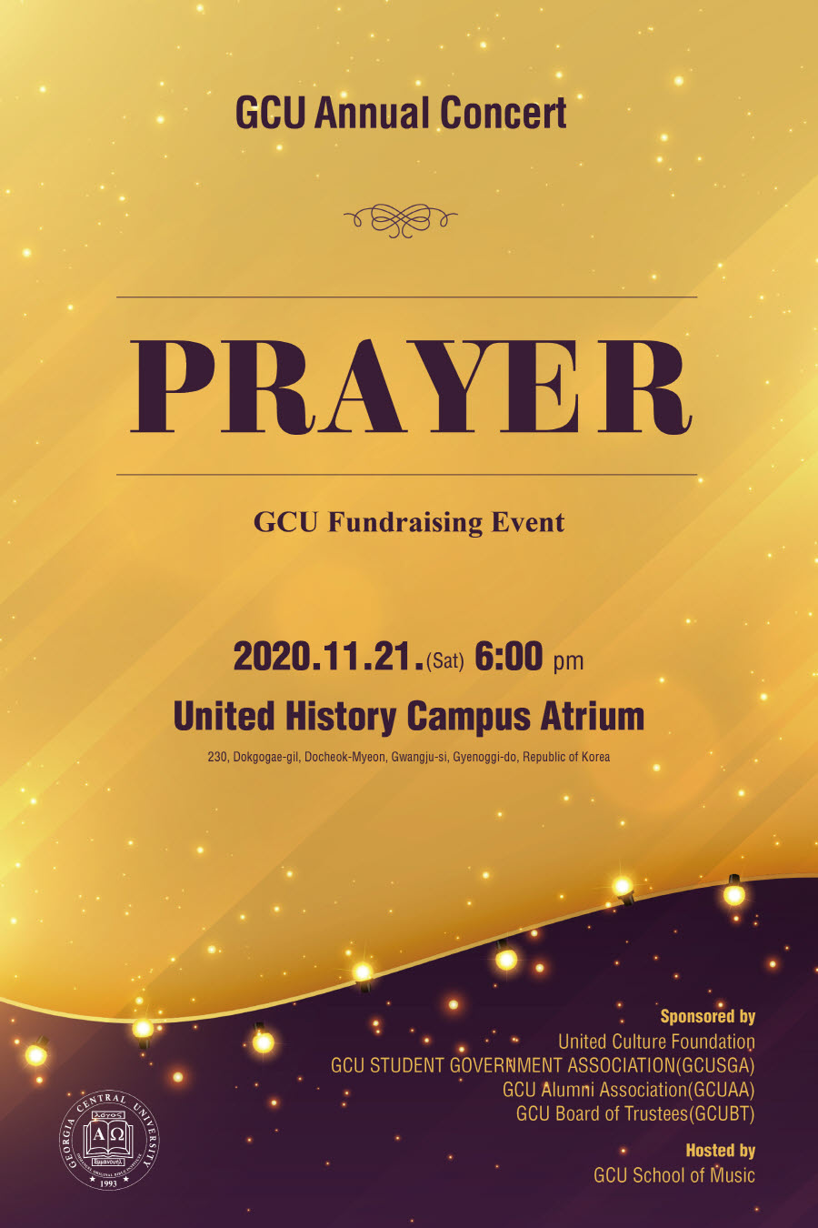 GCU School of Music is hosting an Annual Concert as a fundraising event on Novemeber 21, 2020 in Korea.