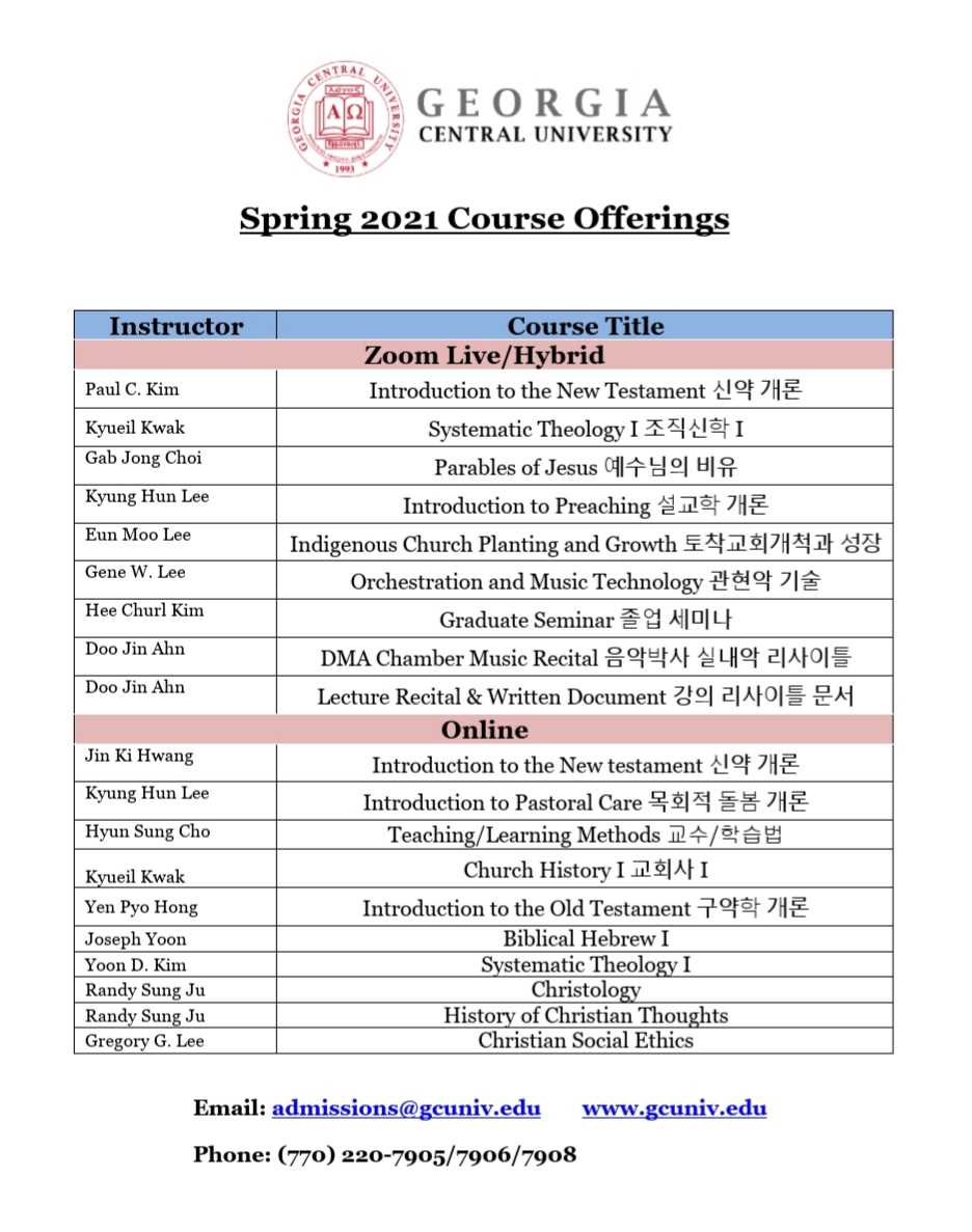 Spring 2021 Course Offerings 봄학기 개강