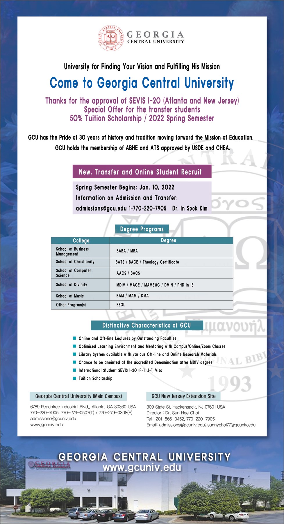 Thanks for the approval of SEVIS I-20 (Atlanta and New Jersey) Special Offer for the transfer students 50% Tuition Scholarship / 2022 Spring Semester.