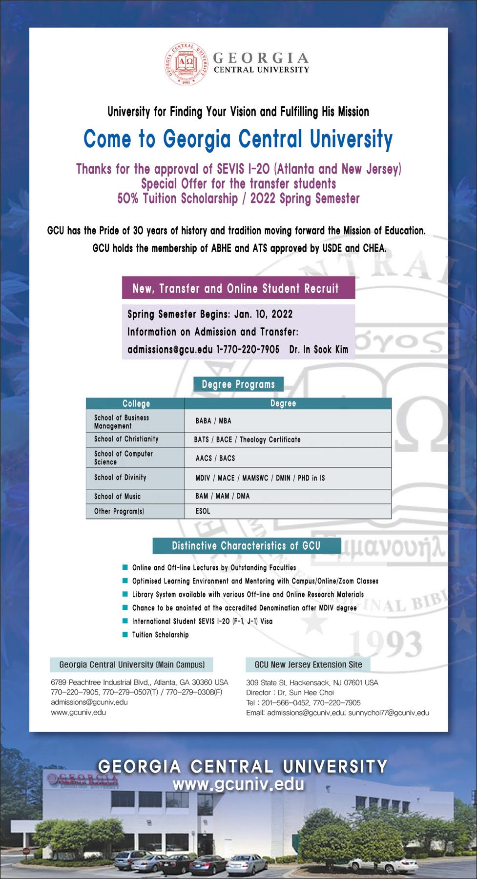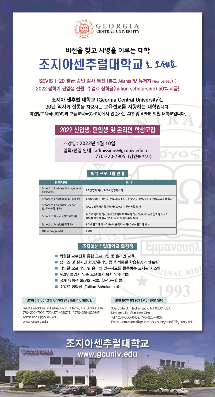 당신의 비전을 찾고 성취할 수 있는 대학, 조지아센추럴 대학교로 오세요!